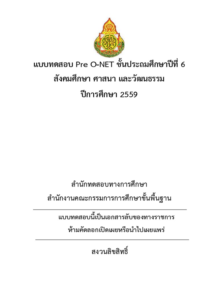 ประเทศ (ภาษาอังกฤษ) ปีการศึกษา 2558 สานักทดสอบทางการศึกษา สานักงานคณะกรรมการการ. Savesave onet ป6.pdf for later. Bądź na bieżąco z onet! Näe twiittejä aiheesta #onet63ป.6 twitterissä. Onet ป.6 by chula tutor.